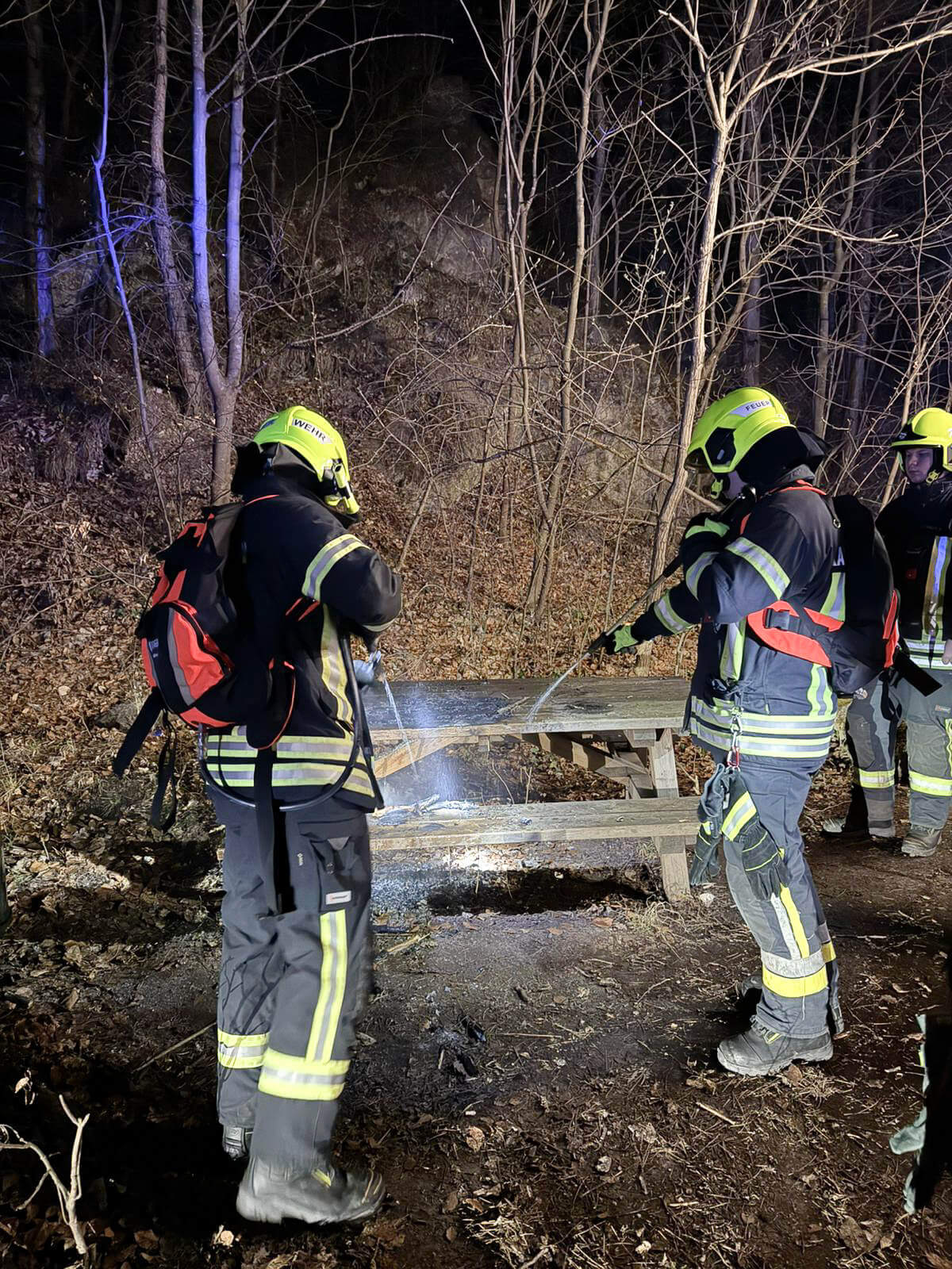 In den späten Abendstunden alarmierte der Diensthabende Disponent der Bereichsalarmzentrale Mödling die freiwillige Feuerwehr Kaltenleutgeben zu einem B1 Kleinbrand mittels Sirene. Am Einsatzort bot sich folgende Lage: ein Tisch mit Sitzbank war aus unbekannter Ursache in Brand geraten. Die Mitglieder der Feuerwehr Kaltenleutgeben löschten den Brand mittels Löschrucksack und Schnellangriff. Anschließend führten wir eine nachkontrolle mit der Wärmebildkamera durch und übergaben die Einsatzstelle an die ebenfalls alarmierte Polizei.